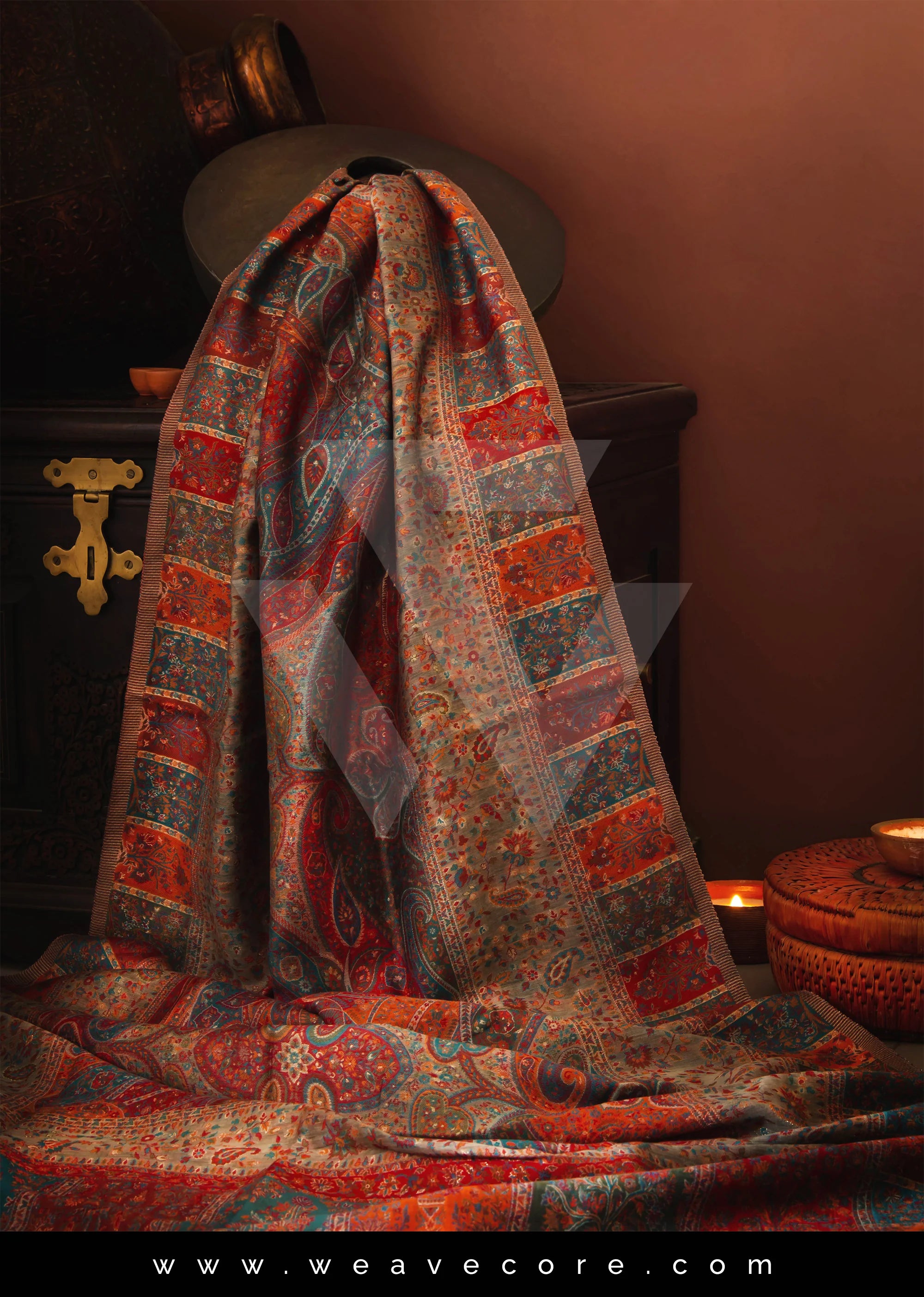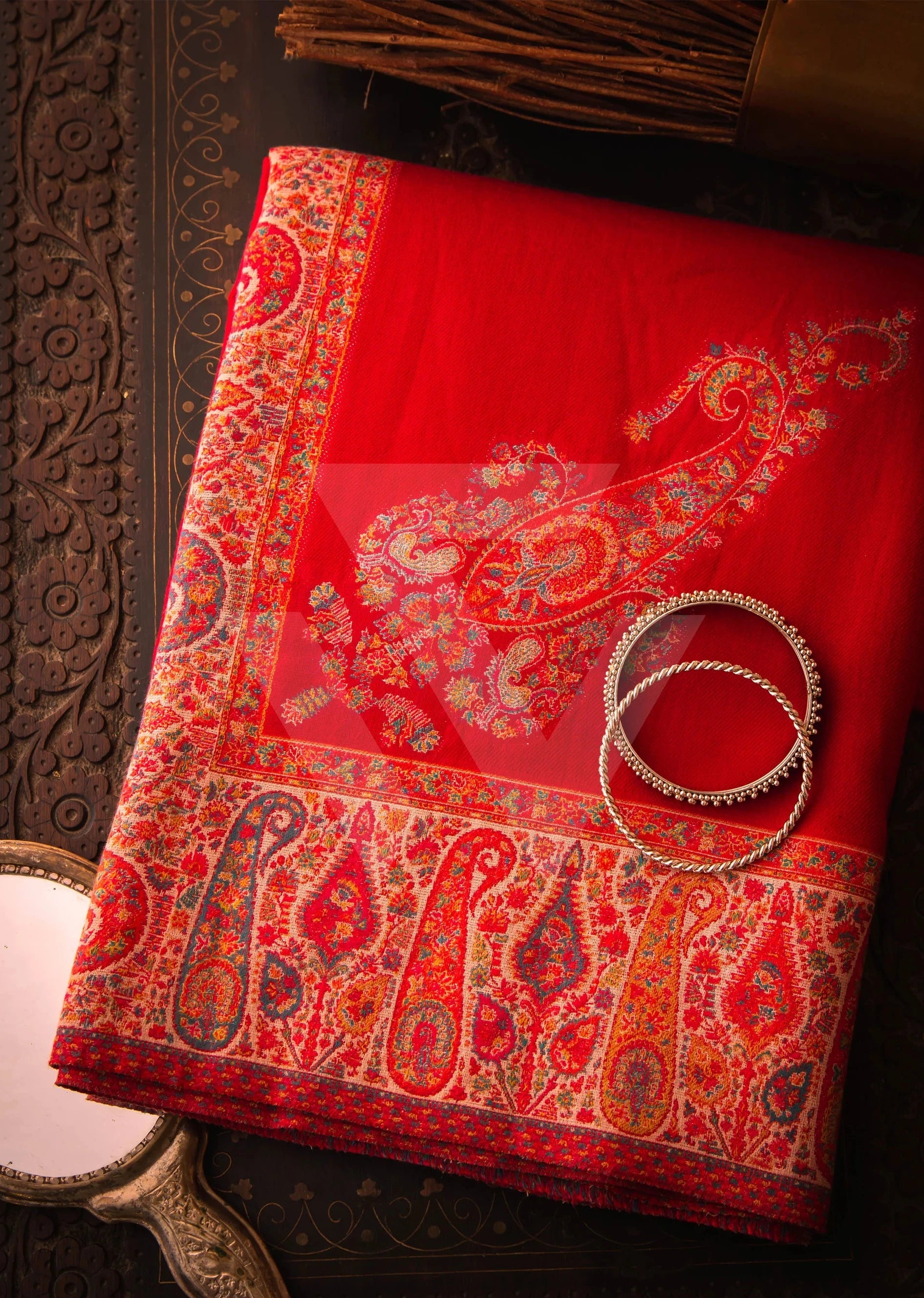 Cross Stitch Embroidered Pashmina Wool Shawl